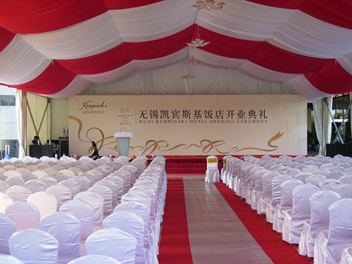 上海宏昱篷房技術有限公司專業篷房、制造、銷售、租賃搭建篷房公司。已通過ISO9001:2000質量體系認證。我公司本著"質量第一、緊抓安全、服務至上"的經營理念,運用先進的技術,高科技材料,從設計、工藝、材料、結構、防火、防風等安全級別及穩定性上嚴格采用歐洲先進的篷房技術,公司擁有轉業搭建的精英人才為您提供的創意和無微不至的服務。 租...